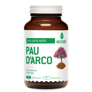 sipelgapuu ehk Pau d´Arco (Tabebuia impetiginosa) koor droogina, sipelgapuu ehk Pau d´Arco (Tabebuia impetiginosa) koor 10:1 ekstraktina, taimne kapsel (glaseeraine pullulaan). Ühes kapslis: Pau’D Arco e. sipelgapuu koor pulbrina: 400 mg sipelgapuu koore ekstrakt 1:10 100 mg